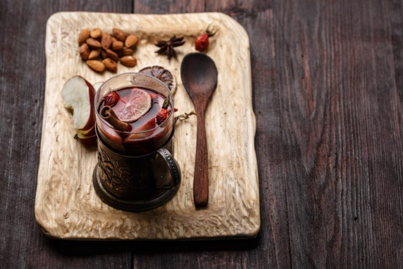 Направете црн чај. Преполовете го портокалот и исечете четири тенки прстени за да ги исечете на половина. Исцедете ги остатокот од портокалите и половина лимон. Во тенџере измешајте ги чајот, виното, сокот од лимон и портокал, прстените од портокал, анисот и мелената кора од цимет. Ставете го на топлина, но внимавајте да не зоврие. Кога е доволно топло, тргнете го од оган. Ставете шеќер во лажица, натопете го во рум и ставете го во тенџере. Промешајте сè и оставете го покриено пред сервирање.