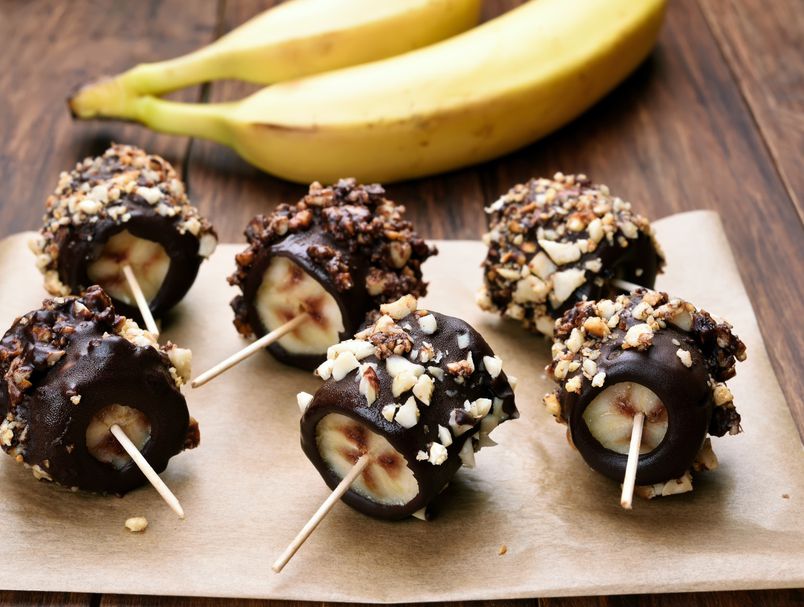 3. Стопете го чоколадото во микробранова печка или пареа, па натопете ги бананите во чоколадото.