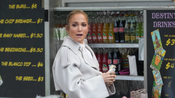 Џенифер Лопез е снимена на сетот на новата романтична комедија на Нетфликс „Office Romance“. Џенифер Лопез била забележана со смешни мимики додека јадела сендвич...