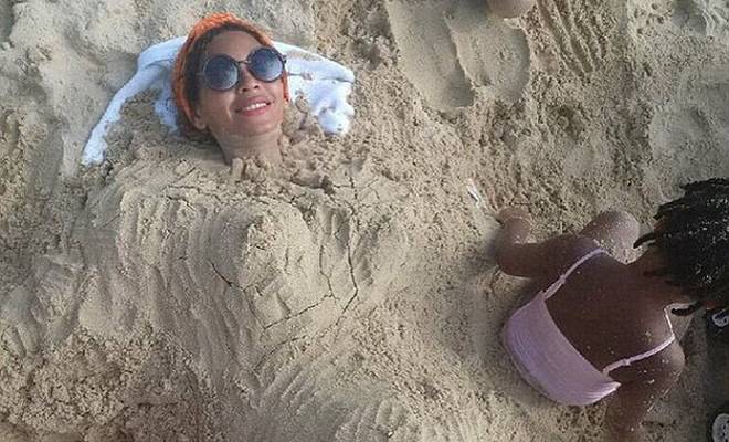 33-годишната дива на својот Инстаграм профил објави фотографија на која лежи на плажа, покриена со песок обликуван како големо трудничко стомаче. Дали ова е...