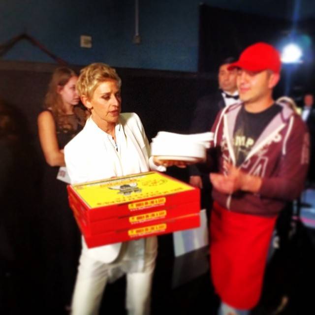 Елен е дефинитивно најспонтаниот и најосвежувачкиот лик на ТВ! Откако Елен нарача пица, ѕвездите и помогнаа да се организира: Бред Пит како џентлмен делеше...