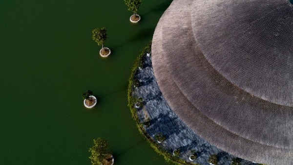 Виетнамското студио Vo Trong Nghia Architects, создаде бамбусова купола висока 16 метри за ресторанот Vedana, кој е изграден над вештачко езеро, свртен кон планините...