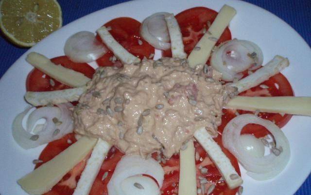 Потребно е: 100 гр. кашкавал 100 гр. целер 2 домата 1 конзерва туна 3 лажици мајонез 3 лажици јогурт 2 лажици сок од лимон...