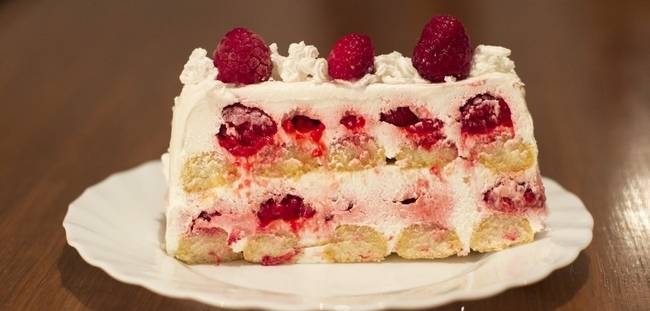 Состојки: Количина: – Бисквити – пишкоти 400g – Шлаг 500g – шеќер во прав 100 гр. – кисела павлака 4 чаши – Малини 600g...