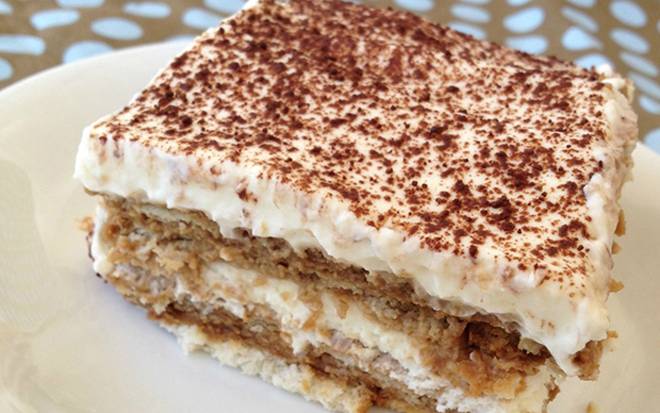Потребно: 500 гр бисквити 500 мл слатка павлака 3 јајца 11 лаж. шеќер 3 лаж. нескафе малку млеко за бисквитите Слатката павлака се мати...