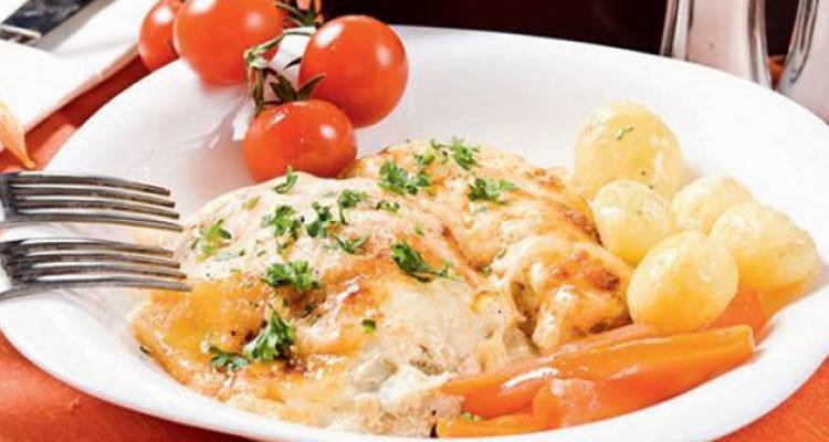Време на подготовка: 45 минути / ќе послужите: 4 800 грама бело пилешко месо 400 грама шампињони 1 лажичка мелени пиперки 2 дл павлака...