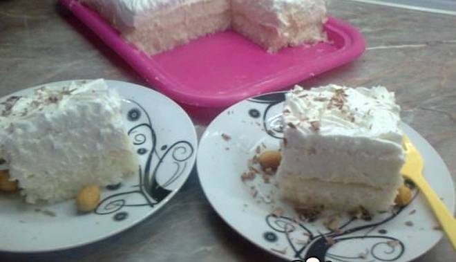 Потребно е: 3 чаши јогурт, 200 грама шеќер, 200 гр кокос, 200 гр гриз, 1 прашок за пециво За сирупот: 250 грама шеќер, 4...