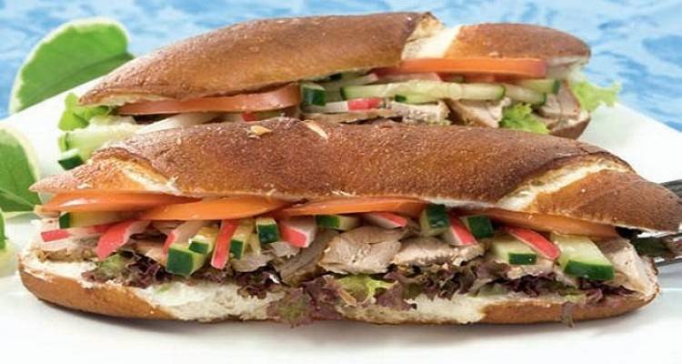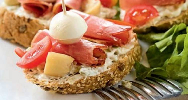 Состојки: -1 француска интегрална векна -250 гр. млечен намаз -5 кисели краставички -1 зелена пиперка -200 гр. шунка -100 гр. моцарела -мешан зачин -бибер...