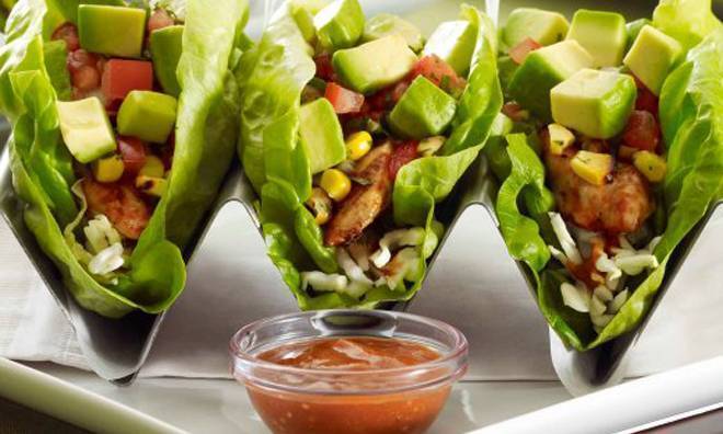 300 грама пилешко месо без коски, исецкано на ситни пачиња 2 лажички медитерански зачин ¼ шолја Балсамико 4 големи листови од марула 50 грама...