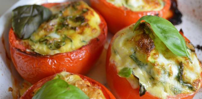Потребни намирници: 6 домати, 200 гр сирење, 2 јајца, Кашкавал, Маслинки, Масло за јадење, Бибер, лук, Начин на подготовка: Се сече капаче на секој...