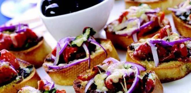 Потребни состојки: – 8 кришки француски леб – 100 гр црни маслинки без семка – 2 домати – 100 гр кашкавал – оригано – ...