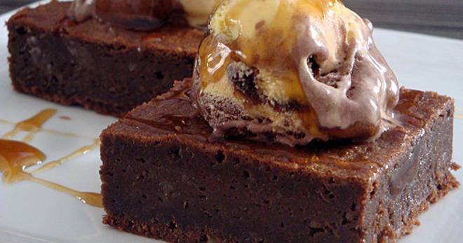 Потребни состојки: 450гр путер 240гр чоколадо за готвење 500гр шеќер 6 јајца 30гр какао 270гр брашно 150гр мелени или ситно сецкани ореви 50гр мелена...