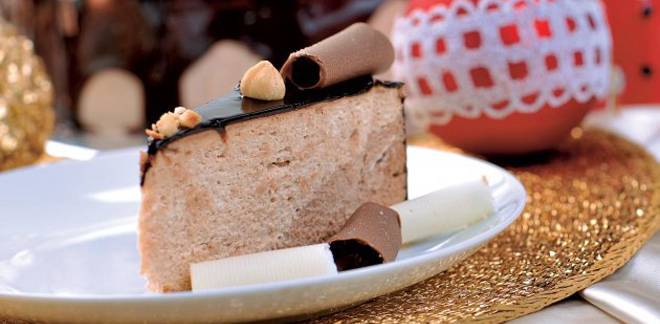 Потребни состојки: За кора: 3 јајца 90гр шеќер 90гр брашно малку масло За фил: 0,5л слатка павлака 20гр желатин 200гр црно чоколадо 150гр бело...