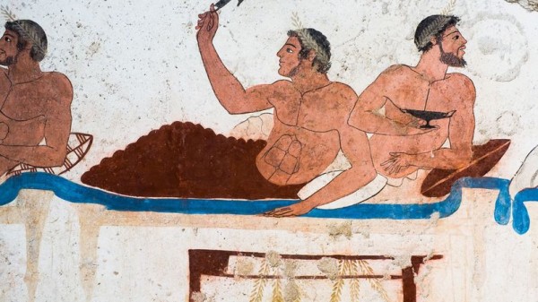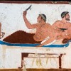 На римските церемонии, гостите удобно седеле и лежеле на перниците, бидејќи се сметало дека варењето функционира подобро хоризонтално. Отпадокот од риба и месо се...