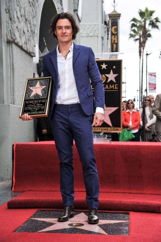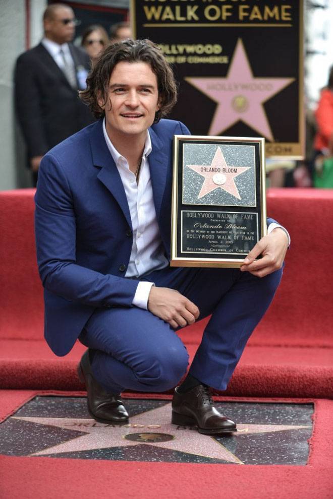 Британскиот глумец Орландо Блум, ѕвезда на филмовите „Пиратите од Карибите“, „Господар на прстените“ и „Хобитот“, ја доби својата ѕвезда на Патеката на славните во Холивуд, а на церемонијата дошол со својот тригодишен син Флин.