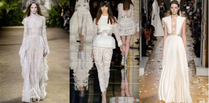 Модната куќа Zuhair Murad не маѓепса со своите творби изработени за венчавка од бајките, невестата на Valentino изгледаше како древна божица, на Versace смела, модерна и секси, а пак невестата на Chanel со ретро мотив.