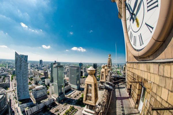Во близина на главната станица, Советите, откако отстранија илјадници тони урнатини од уништените куќи, ја изградија својата верзија на облакодерот во Чикаго – Палатата на културата и науката, која до неодамна беше највисоката зграда во земјата. Има многу шеги на таа тема, меѓу кои и онаа дека најубавиот поглед на Варшава е од 30-ти кат, бидејќи од овде не можете да го видите овој подарок на Сталин.Глетката е навистина прекрасна и топло ви ја препорачуваме.Советите несвесно почнаа да ја создаваат историјата на денешниот Варшавски Менхетен,како што се нарекува овој дел од градот, малку потсмевливо, но малку гордо, со овој неизбежен објект.На местото на некогашното гето почнаа да никнуваат социјалистички, а подоцна и капиталистички облакодери. И она што е најинтересно – во рамната Мазовија, каде што може да се изгради предградие на Варшава до границата со Белорусија.