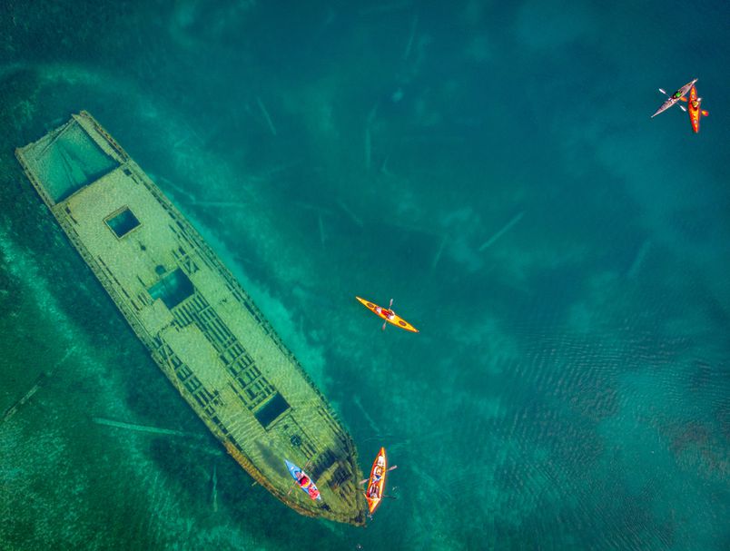 Во категоријата водни површини со невообичаена приказна се и огромните езера во Канада и САД, кои имаат свои „бродски гробишта“.