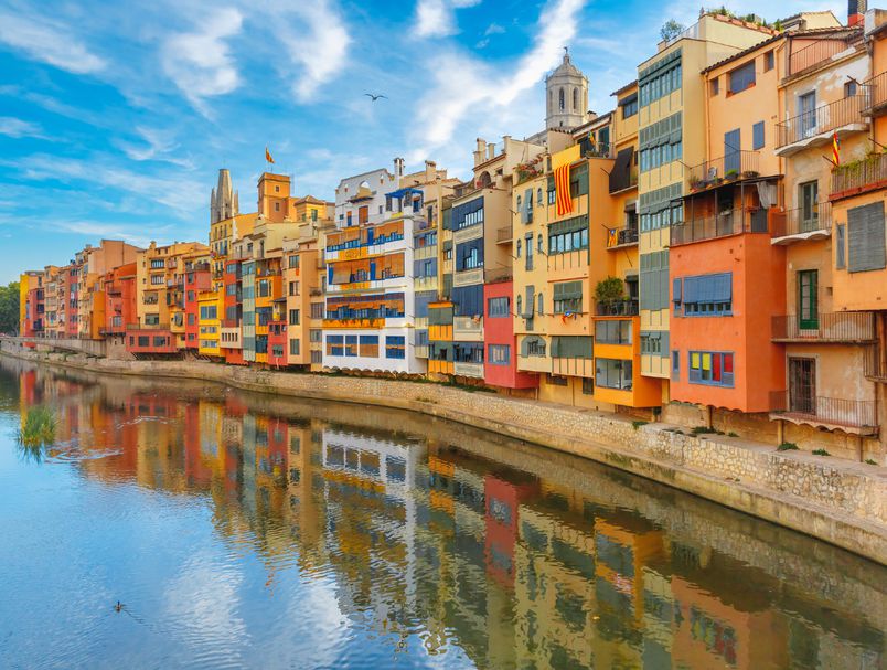 Градот е компактен, а најдобар начин да ги откриете историските знаменитости е пешачење. Жирона е позната по своите 11 мостови, од кои најпознати се бајковитиот мост Pont de Pedra и рѓосаниот железен мост El Pont de Ferro дизајниран од познатиот Густав Ајфел. Исто така, од тој мост го имате најдобриот поглед (и совршена слика) на шарените куќи што се надоврзуваат на реката (Cases de l’Onyar). Не ја пропуштајте катедралата со своите импресивни витражи и серијата од 86 чекори кои се прославија со серијата „Игра на тронови“.