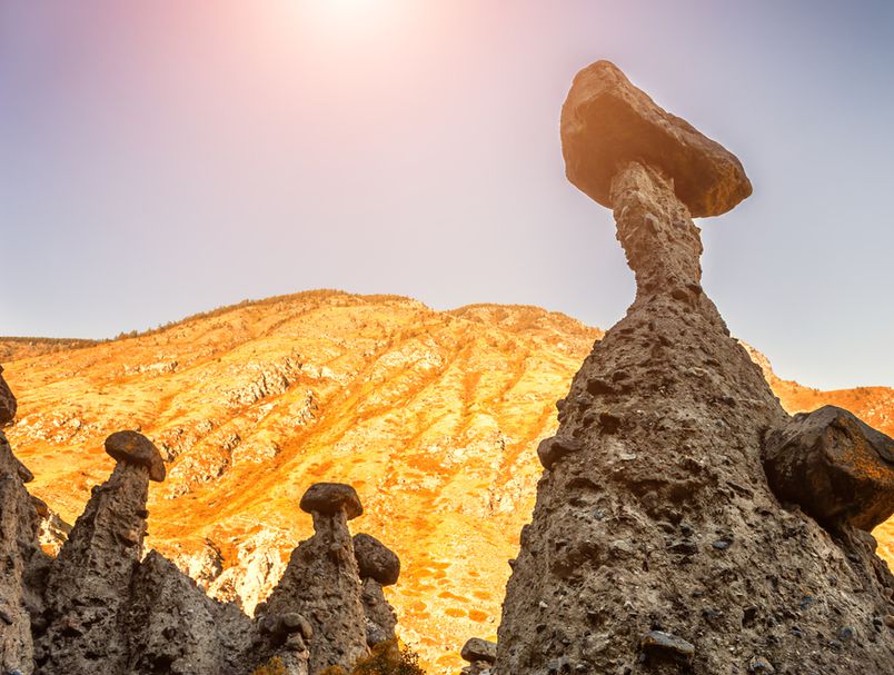Ги нарекуваат „курумус“, а некои понекогаш едноставно ги тепаат – печурки, затоа што ги потсетуваат со камени глави. Карпестите формации можат да бидат високи и до 5 метри, па можете да ги видите дури и од долината. И, ако мислевте дека овие тивки чувари едноставно стојат морничаво и го следат пределот од ридот, еве уште еден „плашлив“ факт: тие полека се симнуваат по ридот.