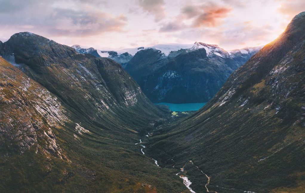 Само една воздушна фотографија беше доволна за да се заљубите во норвешкиот град Стрин (Stryn). Сместено на југот на Норвешка во лавиринт од острови, полуострови, заливи, реки и национални паркови, се чинеше како совршено место за зимски одмор – и навистина е така. Идиличната долина е само „sneak peek“ во прекрасната природа што владее тука.