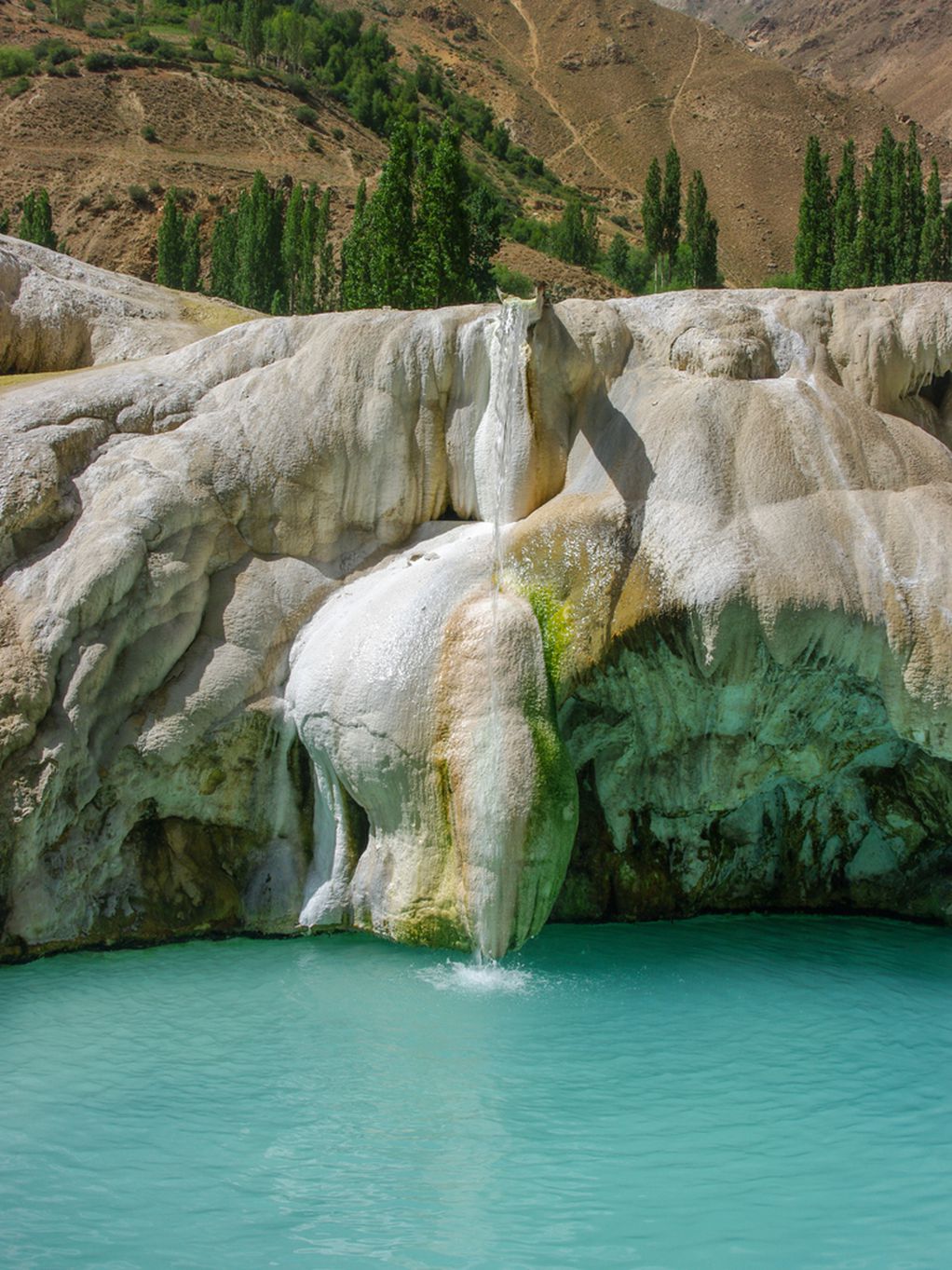 Лоцирани во планински височини на околу 2.200 метри, топлите кади Гарм-Чашма се одличен избор за секој хедонист. Водата што извира овде врие на околу 50 степени, создавајќи мини гејзери кои достигнуваат висина од еден и пол метри. Додека во базените ќе најдете топла и лековита тиркизна вода, во волшебна бања од туфа.