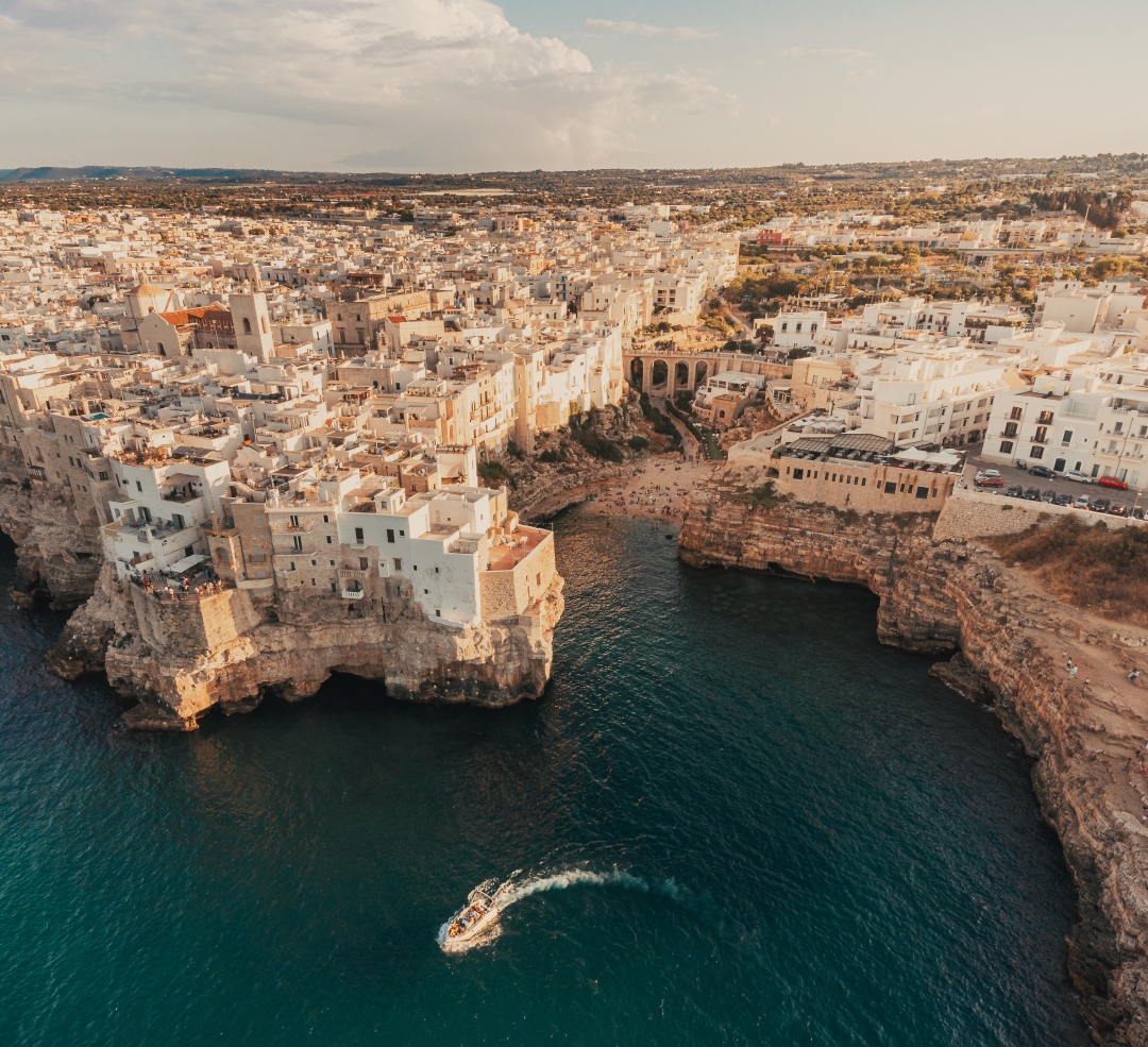 Polignano a Mare… Тоа е место каде можете да уживате во морска храна и да се одморите на плажа во летните денови. Овој мал крајбрежен град се наоѓа на карпа со еден од најубавите погледи на морето.