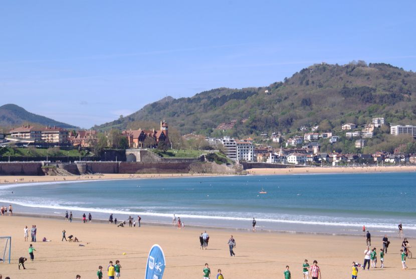 Сан Себастијан се наоѓа на брегот, а над него се гледаат ридовите Игелдо и Ургул.
