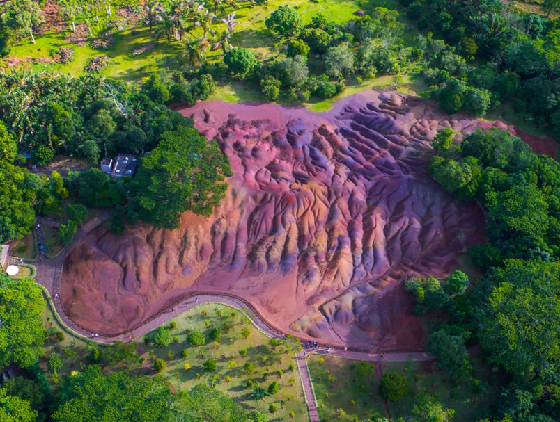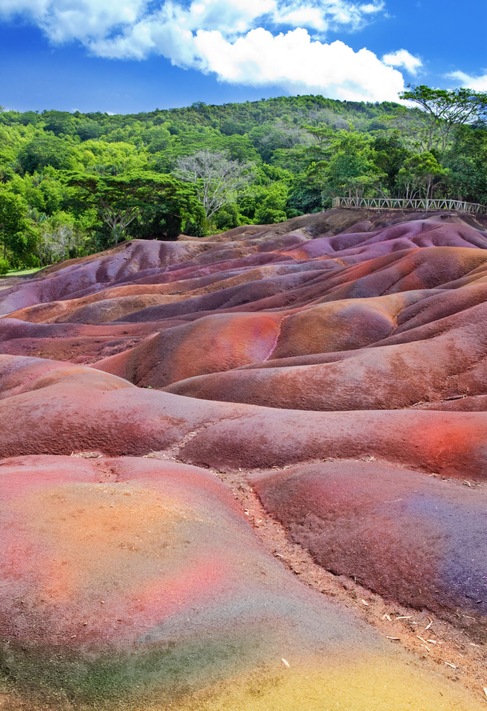 Маурициус има една необична коинциденција, а тоа е дека една од неговите најпознати туристички атракции е прилично слична на нејзиното знаме. Имено, знамето на Маурициус е лесно запаметено бидејќи се состои од само четири бои уредно поставени хоризонтално една над друга: црвена, сина, жолта и зелена.