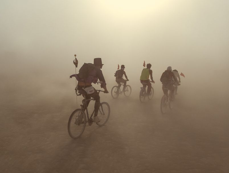 Гигантски инсталации, украсени велосипеди, телефонски штандови на кои пишува „Зборувај со Бога“, електронска музика, неонски украси што сигнализираат „сообраќај“ во пустинската прашина, илјадници учесници во неверојатни модни комбинации со очила и маски за лице за заштита од прашина… сцена што ќе ја најдете на фестивалот.