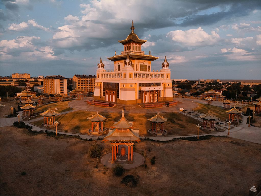 И ако мислите дека е чудна комбинација, почекајте додека не ги видите будистичките храмови среде степската пустелија. Патем, градот има уште еден познат прекар: најголемиот будистички град во Европа. И ако погледнете поблиску, ќе видите дека помеѓу храмовите и фигурините од предградието, Ленин ви се смешка.