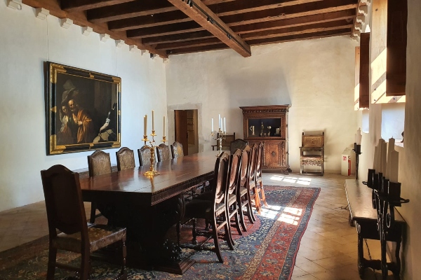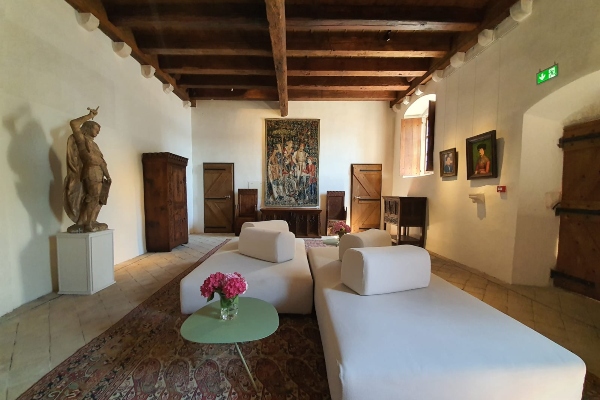 Карактеристично со бујни градини, овој имот е реновиран под будното око на архитектот Загреб, Рујана Марковиќ и италијанската дизајнерка Паула Ленти, чии светло обоени парчиња мебел го украсија целиот ентериер и пет гостински апартмани. И додека дебелите камени wallsидови на овој имот сè уште ја задржуваат својата монашка трезвеност, која сега е балансирана со уметнички дела и антиквитети од семејната колекција, која важи за една од најдобрите во целиот свет. Од антички врежани ангели до средновековни очила до модерна фотографија и дела од современи уметници, овие парчиња го отсликуваат она што Тајсен-Борнмс го опишува како „уникатен дијалог меѓу ренесансата и модерното време“, додавајќи дека колекцијата е кулминација на три генерации на колекција и вкус.