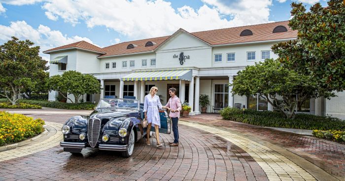 На пример, Историскиот Ин, центарот на целиот имот, се отвора кон иконската островска дупка со остатокот од теренот за голф што се шири до видикот на окото. Во затворен простор, зградата нуди изложено дрво, тавани со светна светлина, големи лустери и софистицирани простории. Трпезаријата „Ин“ се карактеризира со порцелан од Викторијанската ера и најмали детали, од свежи печива до презентации на класични оброци во текот на денот.