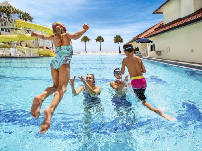 За оние кои бараат друга опција за пливање во солена вода, на само неколку метри седи ново реновиран семеен базен со висок тобоган за деца, базен за кругови и базен за возрасни, веднаш до бар и Surf Club Patio, сакана локација за свадби и други настани. Веднаш над базенот за возрасни стои сала со истите широки прозорци кои обезбедуваат најдобар поглед кон океанот. Со часови по аква-аеробик со поглед на океанот , можно е да се биде на плажа без да се гази на песок. Се разбира, песокот сѐ уште останува за секој што сака да трча кон океанот.