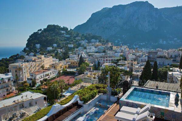 Убавиот остров Капри од секогаш бил празник за љубителите на хедонистичкиот одмор, со своите живописни пролази и  неверојатно опкружување, што можете да го забележите од прозорецот на Вашата хотелска соба. Централната Piazzetta потсеќа на времето на Ромео и Јулија, а дизајнерот Đampijero Panepinto  му оддаде почит на таа ера во овој луксузен хотел.