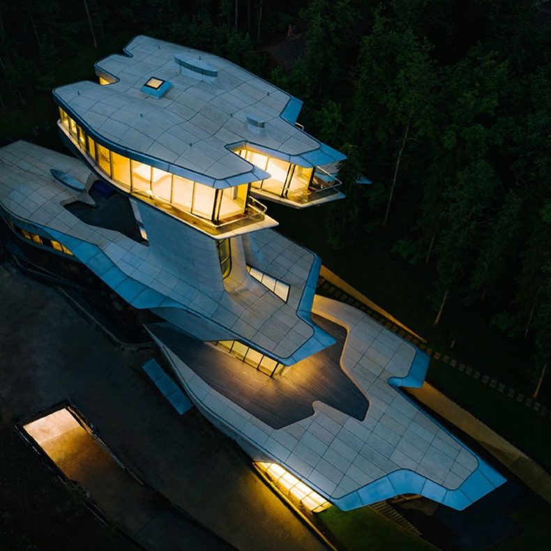 Славната архитектка Заха Хадид, која беше ангажирана од Доронин, откако таа нацрта скица на неговата салфетка, е одговорна за оваа екстравагантна зграда. Ова е единствената приватна резиденција што ја дизајнирал славниот архитект, која почина во 2016 година, а се карактеризира со препознатливи органски форми и линии.