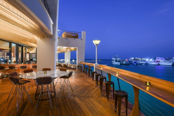 Во попладневните часови побарајте арапско кафе за да уживате во кафето додека се релаксирате во една од елегантните лежалки. Надвор има марина со клуб-куќа за чамци, како и базен со палми со водопад и забавен бар за пливање наречен Фламингос.