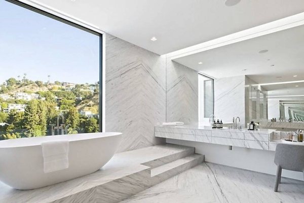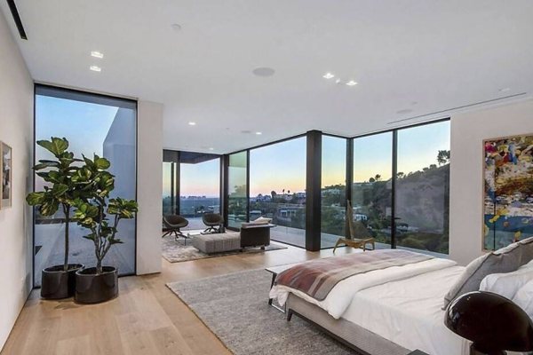 Карактеристиките на вилата вклучуваат поглед на Лос Анџелес, Тихиот Океан и пошироко, стаклени ѕидови што се повлекуваат, бар на отворено, винарска визба со простор за повеќе од 300 шишиња вино и гурманска кујна со остров од црн гранит и италијански кабинети со месинг акценти.
