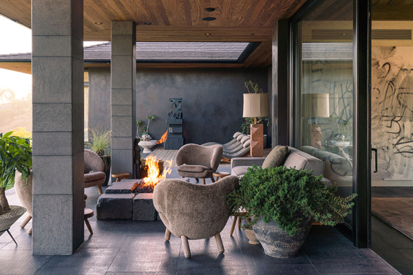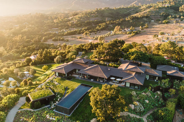 Имотот е дизајниран да изгледа како балиско одморалиште. Секоја од зградите има покриви од слама, додека главните завршетоци се топло дрво и темен камен. Деџенерис и Роси значително го проширија овој имот кога го купија, додавајќи уште некои парцели во близина.
