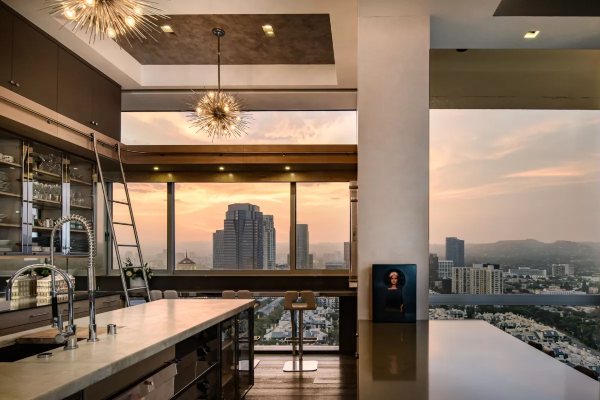 Станот се наоѓа на горниот кат од архитектонското ремек-дело со целосна услуга IM Pei и има 320 квадратни метри простор за живеење. Зрачи со луксуз, со атрактивни бушави теписи, кадифени фотелји и дела на современа уметност.