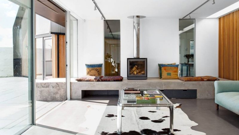 Навлегувајќи подлабоко во внатрешноста на куќата, гледаме дека минимализмот доминира и во голема мера го дефинира конечниот амбиент, користејќи неутрални нијанси, огромни прозорци кои го „преплавуваат“ просторот со природна светлина правејќи скоро директен контакт со дворот, а со тоа и со убавината на природа која го поплавува околниот пејзаж.