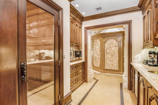 Внатрешноста на куќата е класично стилизирана со акценти на дрво, мермер и варовник. Прекрасното двоспратно фоаје вклучува двојни скали кои го одземаат здивот со сложена метална конструкција и рачно изработени француски лустери. Кујната на готвачот е поврзана и со катчето за појадок и со спектакуларната празнична трпезарија со рачно врежан камин, а има и винарска визба со контролирана температура.