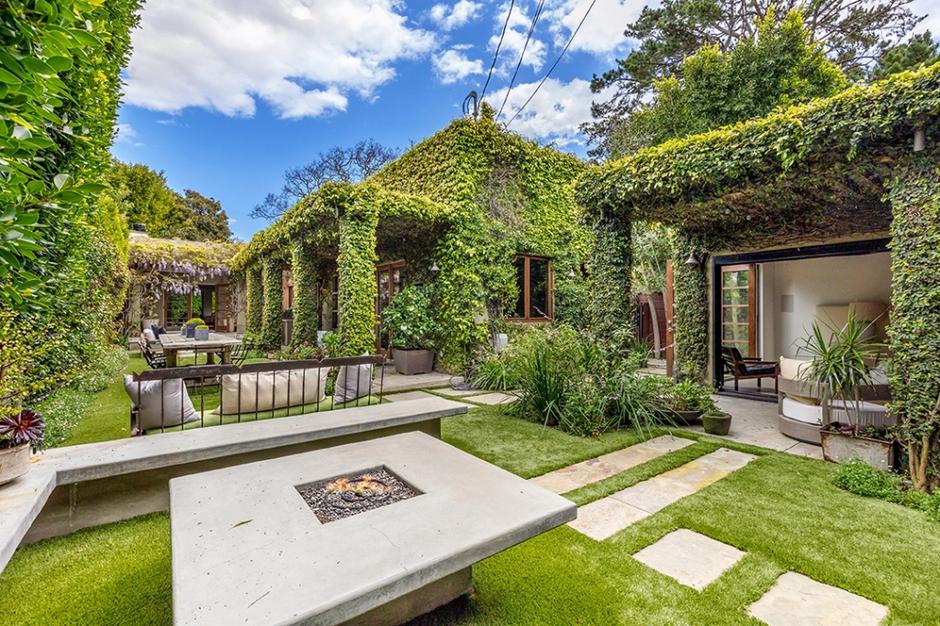 Зимзелена вештачка трева, густа жива ограда и зрели растенија создаваат бујна и осамена оаза со скара и трпезарија на отворено. Објектот, исто така, вклучува водни елементи и топла када.