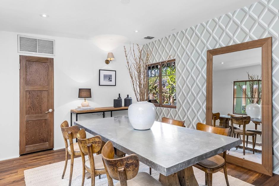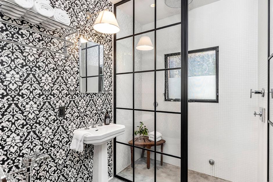 Во станбениот простор од 148 квадратни метри во бунгалов има две спални соби и две бањи, додека одвоената структура, веројатно некогаш гаража, нуди дополнителен простор за живеење. Француските врати на спротивните ѕидови на дневната,трпезаријата и кујната со отворен план овозможуваат беспрекорна интеграција со надворешните простори за живеење, а широката палета на преклопни врати од хармоника го постигнува истиот внатрешено-надворешен проток во посебна структура.