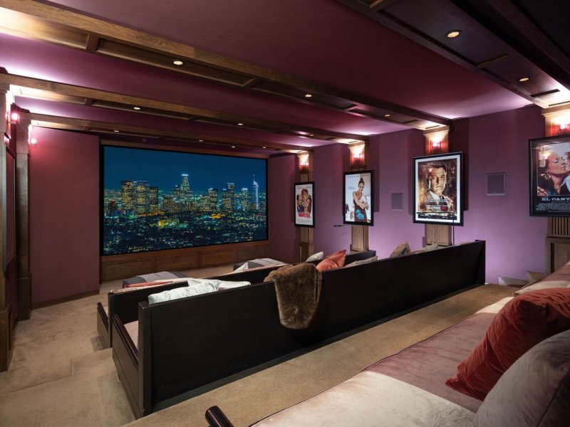 Меѓу импресивните карактеристики на домот е и приватно домашно кино со накит. Театарот, во кој се сместени 30 луѓе, е украсен со постери од некои филмови во кои глумат Џенифер Лопез и Бен Афлек.