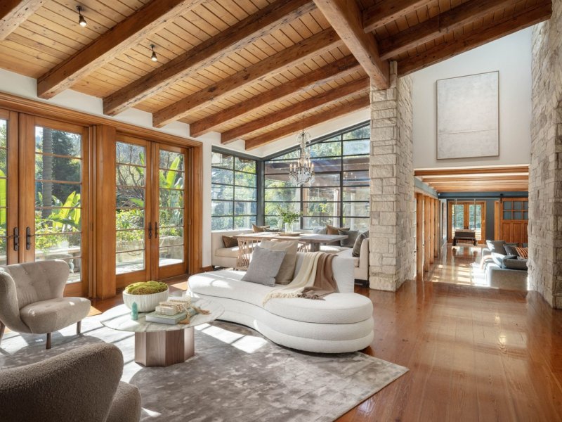 Освен престижната локација, купувачите би можеле да ги привлече и декорацијата инспирирана од француската архитектура на малите села, а домот е наместен со камен и дрво, што на имотот остава впечаток на топлина и луксуз.