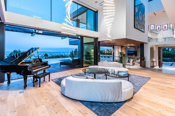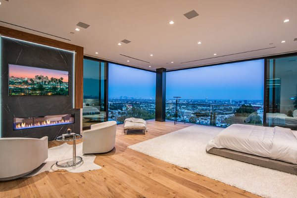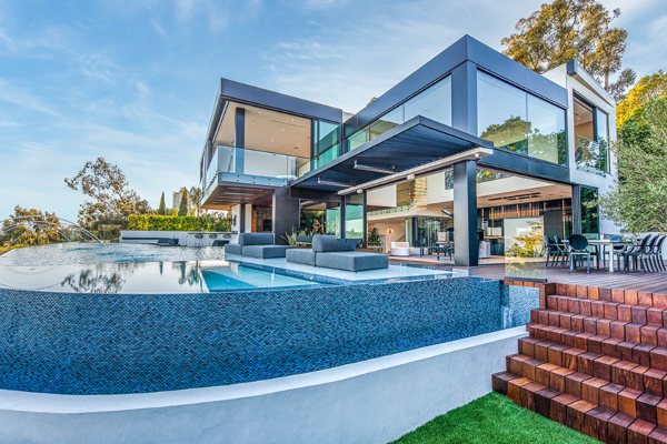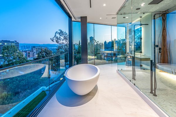 Има четири спални соби и пет купатила, плус голема надворешна дневна соба што се влева во отворената кујна и бесконечен базен со поглед на градот. Водопадот од 30 метри паѓа и нежно се лее низ скалите, протегајќи се од горниот кат, па се до подрумот.