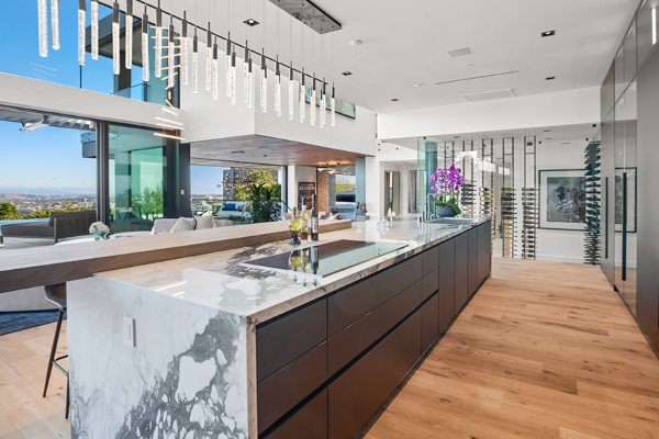 Има и две затворени кујни, од кои едната е скриена зад тајна врата и служи како кујна за забава. Во големата просторија има стаклена визба со контрола на температурата во која може да се чува вино.
