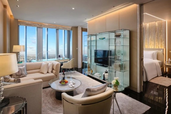 J Suite, еден од најдобрите апартмани во хотелот, изгледа беспрекорно со кристални лустери и приватна сауна и чини 10.300 долари за една ноќ. Грандиозниот стан ви го нуди најдоброто од раскошот со своите спектакуларни ентериери, пријатно осветлување и целосно бела, неутрална палета на бои. Тоа е придружено со прекрасна дневна соба со центар за забава, работна маса и многу удобен мебел за седење. Исто така, тука е секако еднакво екстравагантна бања со када, простор за облекување и туш.