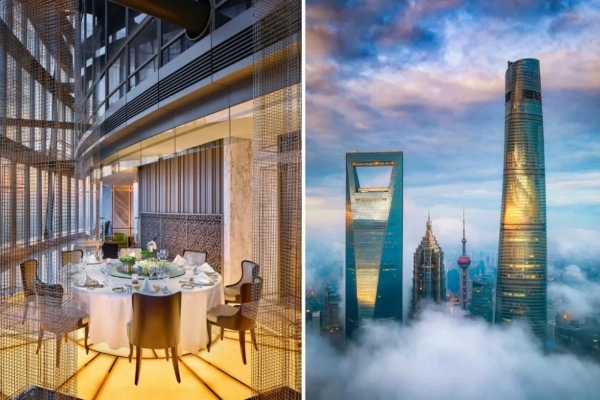 Висок 609 метри, овој хотел всушност по тоа мерило ја надминува двапати Ајфеловата кула. Зафаќајќи го 86-от и 98-от кат од Шангајската кула, хотелот, заедно со уште неколку неверојатни удобности, како што е 24-часовен приватен батлер, затворен базен, нуди 165 хотелски соби, вклучително и 34 апартмани.